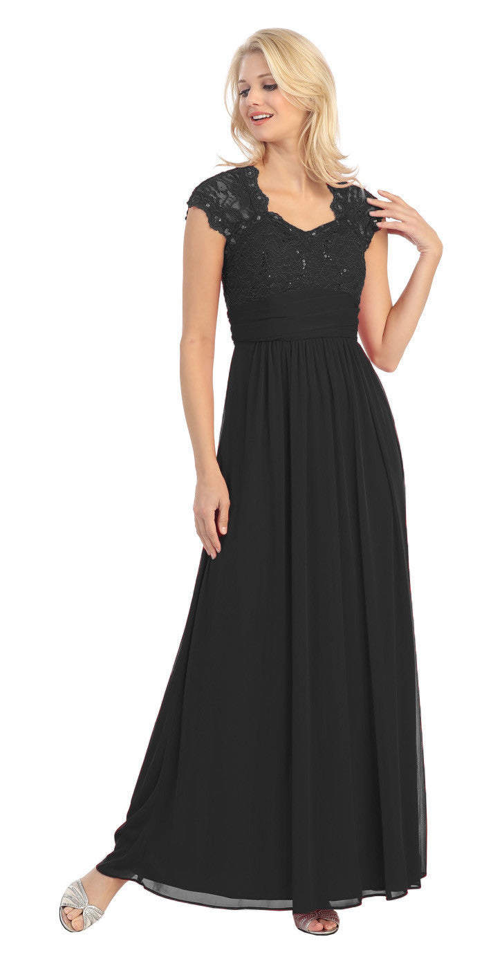 Sweetheart Neck Lace Bodice Black Floor Length Dress