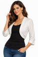 This 3/4 sleeve ITY stretchy white georgette bolero jacket (or shrug) is perfect for that bridal dress, wedding dress, cocktail dress or any formal event. Compliments any dress perfectly. For other colors click here.