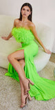 Imagine yourself in this beautiful floor length fitted evening gown for your next formal event by Ladivine C141. Step into the spotlight with this stunning two-piece neon dress. The form-fitting stretch skirt and strapless faux feather tube top are sure to make a statement. The daring leg slit offers just a hint of skin, making this look both sexy and sophisticated. Whether you opt for a bright pink hue or bold electric blue, this dress is guaranteed to make an unforgettable impression. Be the brightest in your next special occasion and show off your enviable sense of style in our two-piece neon dress. An ideal full-length dress for red carpet events, pageant, prom or in any other formal occasions!