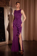 Ladivine CH377 Long Fitted Neoprene Eggplant Dress