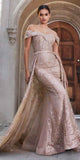 Andrea & Leo A1200 Sequin Lace Off the Shoulder Gown with Overskirt