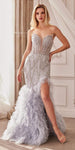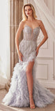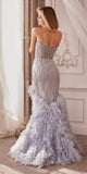 Andrea & Leo A1325 Long Strapless V-Neckline Silver Mermaid Gown - Silver