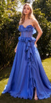 This charming A-line chiffon dress by Andrea & Leo A1341 offers a timeless beauty with a touch of allure. Dance the night away in this formal dress featuring a sweetheart neckline and sheer boned bodice adorned with whimsical ruffles. Complete with a ruffled waistline, leg slit, and corset lace-up tie back, this dress will make you step into the spotlight. This formal full-length dress is definitely a one-of-a-kind long dress for red carpet events, pageant, prom or in any other formal occasions!