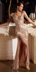 Cinderella Divine CH171 Cap Sleeve Long Sequins Fitted Gown