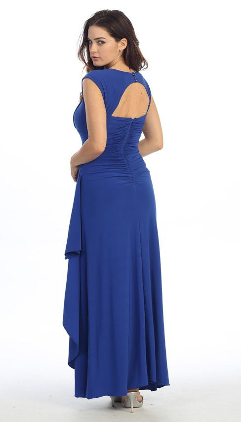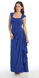 Cap Sleeved Side Gathered Floor Length Royal Blue Formal Gown