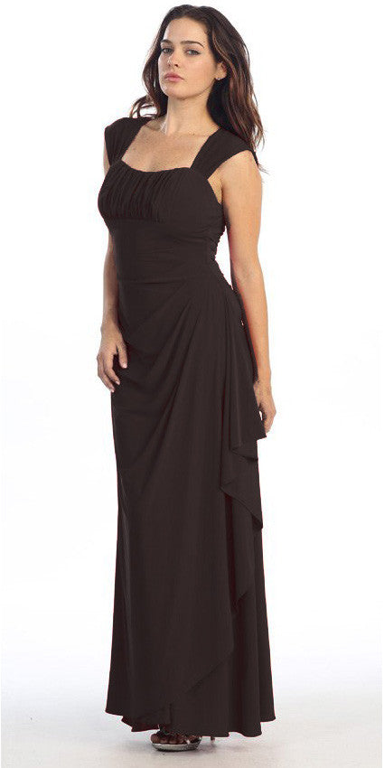 Cap Sleeved Side Gathered Floor Length Black Formal Gown