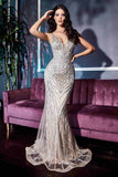Feel the glitz and glamour in wearing this long stunning formal evening gown for your next special event! This floor length mermaid gown by Ladivine CD935 radiates elegance and sparkles in the light! This sleeveless dress has wide straps and features geometric silver beaded embellishments on a tulle overlay. It also features a V-neckline with a sheer insert panel and an open back. An ideal full-length dress for red carpet events, pageant, prom or in any other formal occasions!