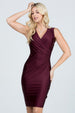 V-Neck Dark Burgundy Shimmering Cocktail Dress Sleeveless