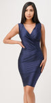 V-Neck Navy Blue Shimmering Cocktail Dress Sleeveless