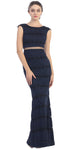 Mock 2 Piece Gown Black Navy Blue Metallic Mesh Floor Length Cap Sleeve