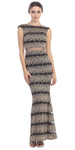 Mock 2 Piece Gown Black Blush Metallic Mesh Floor Length Cap Sleeve