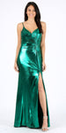 Eureka 9030 Shiney Foil Jersey Ruched Bodice Metallic Long Dress with Slit