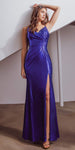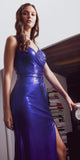 Royal Blue Ruched Bodice Metallic Long Prom Dress with Slit